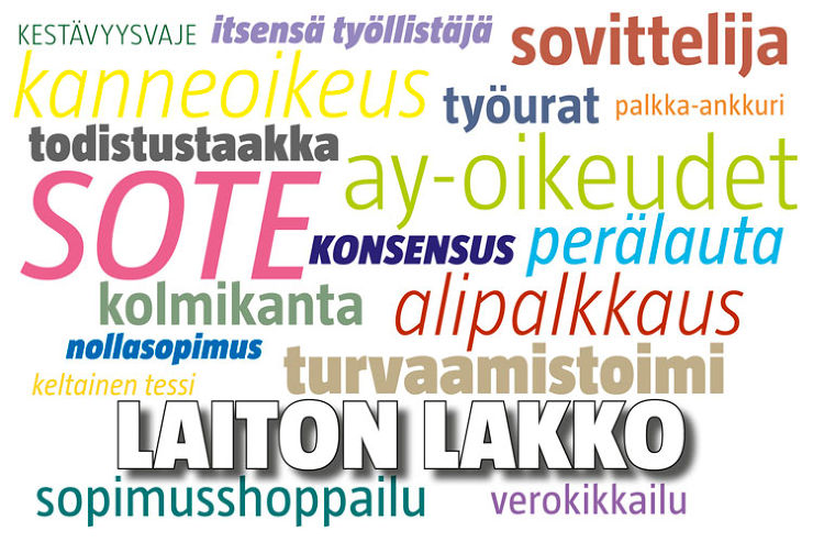 Laittomia lakkoja on vuosittain tilastoijasta riippuen 70–120. Työtuomioistuimelle tuli viime vuonna työrauhakanteita 77, joista suurin osa tuomittiin laittomiksi lakoiksi ja kaikissa tapauksissa ay-liike hyvityssakkojen maksajiksi.