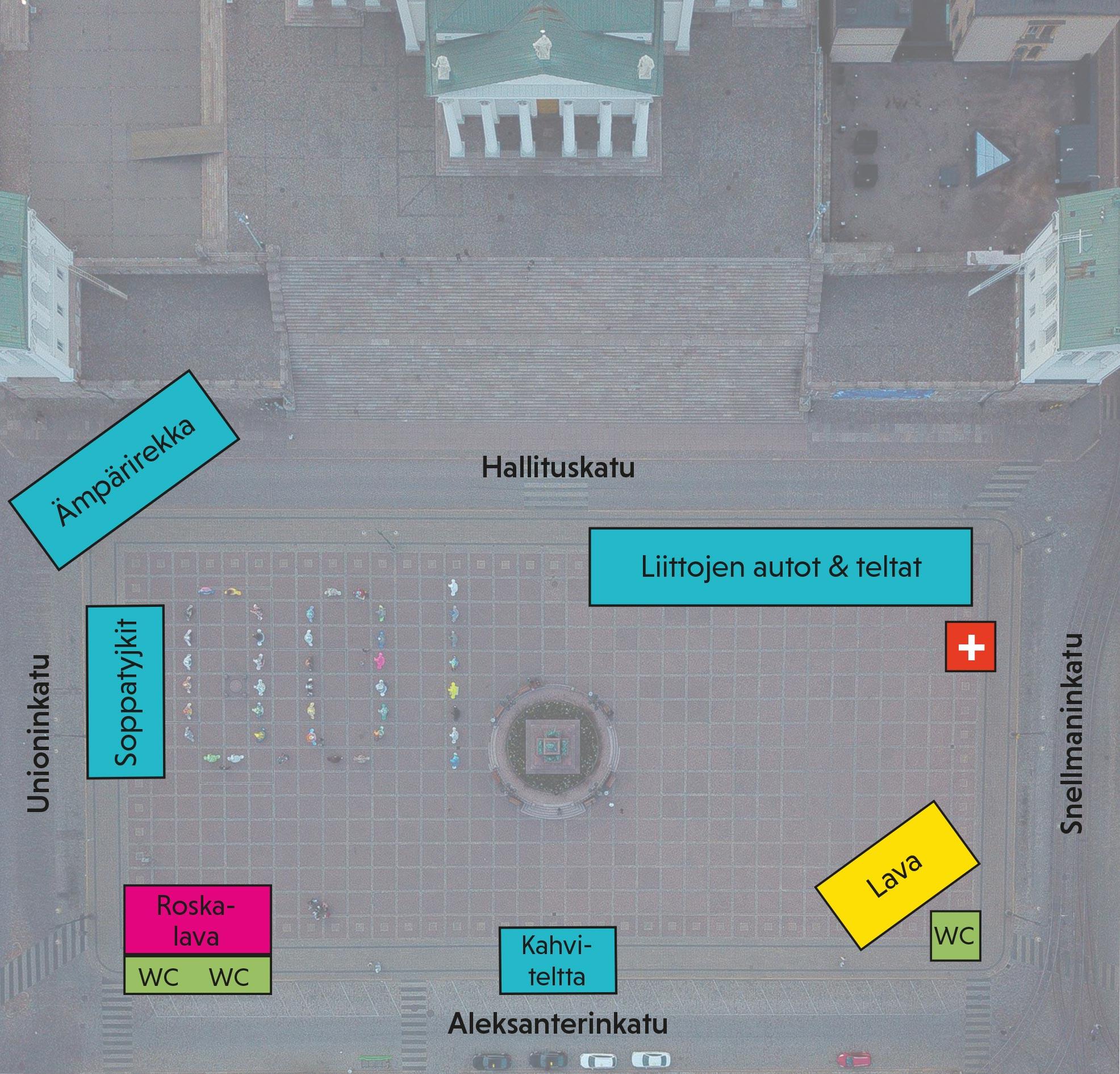 Mielenilmauksessa on ehdoton nollatoleranssi väkivallalle ja rasismille. Toivomme myös, että Senaatintorilla ei ole näkyvillä puoluepoliittisia tunnuksia.