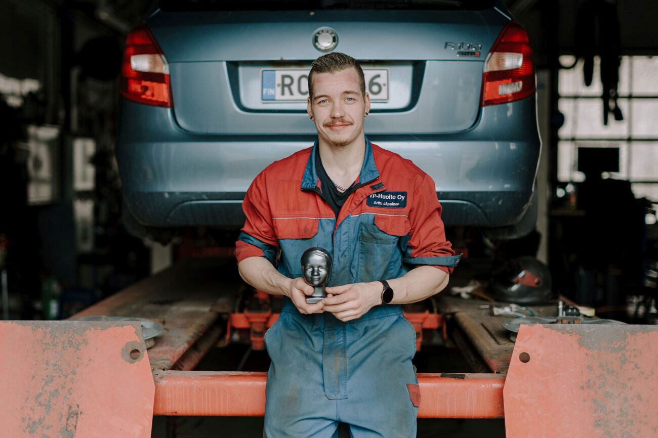 Automekaanikko Arttu Jäppinen sai Työyhteisö-Hymyn hyvästä työkaveruudesta