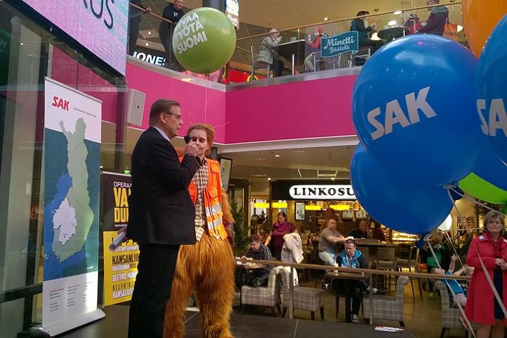 SAK:n vaalikampanja levittäytyi lauantaina eri puolille Suomea. Tampereen Koskikeskuksen Hyvää (t)yötä Suomi -tapahtumassa SAK:n puheenjohtajaa Lauri Lylyä haastatteli liitto-orava Salme Pasi.