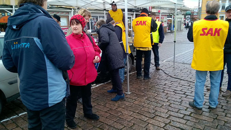 Kariutuneet työmarkkinaneuvottelut ja hallituksen kaavailemat pakkolait puhuttivat torin väkeä.