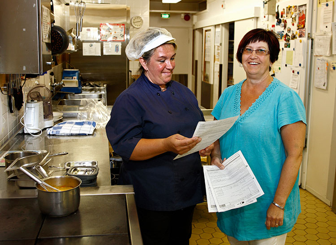 Ahvenanmaalainen Inger Flöjt (oik) on JHL:läinen luottamusmies ja aktiivinen jäsenhankkija. Mona Eriksson on ollut jäsen jo pitkään.