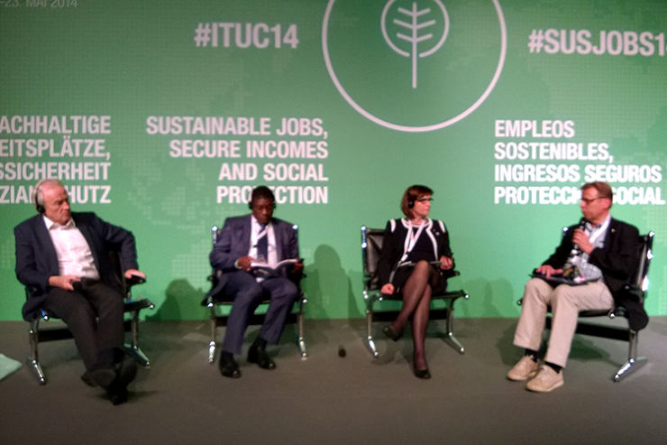 Lauri Lyly piti työllisyyttä ja talouskasvua peräänkuuluttavan puheenvuoron ay-liikkeen maailmanjärjestön kokouksessa Berliinissä.