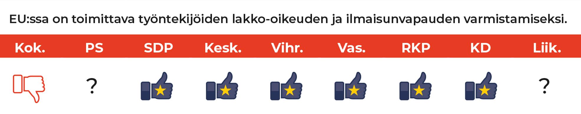Kotimaan politiikka on osoittanut, että eurovaaleissa on painava syy lähteä äänestysuurnille. SAK kartoitti puolueiden suhtautumisen työntekijöille tärkeisiin EU-tason kysymyksiin.