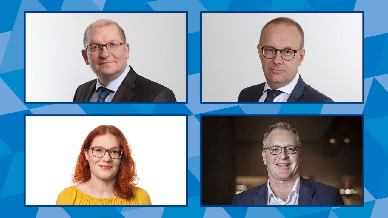 Riku Aalto (Teollisuusliitto), Jarkko Eloranta (SAK), Annika Rönni-Sällinen (PAM) ja Petri Vanhala (Paperiliitto)