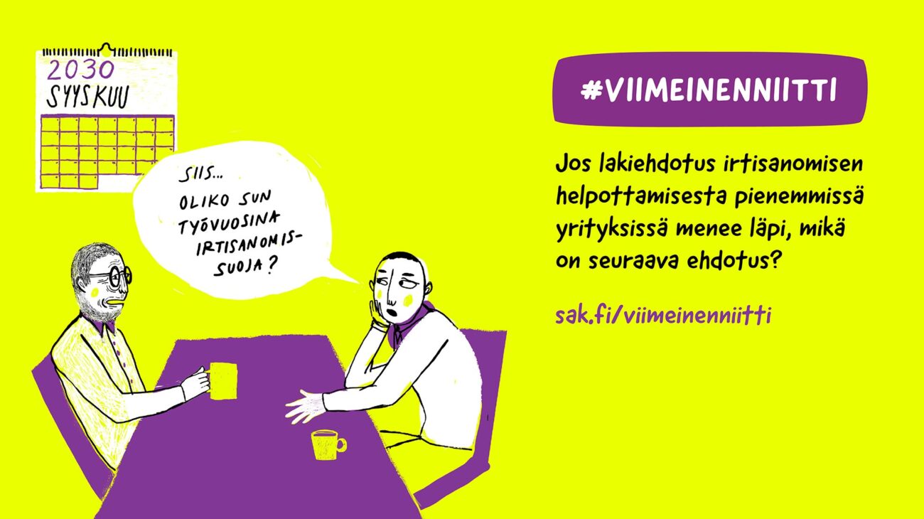 Lue lisää hallituksen irtisanomislakiehdotuksesta ja ammattiliittojen toimista osoitteessa www.sak.fi/viimeinenniitti.