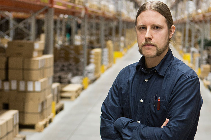 Berner Oy:n Vantaan logistiikkakeskuksen noin 30 PAMilaisen pääluottamusmies Pasi Nurminen tekee töitä, jotta työpaikan hiljainen tieto saataisiin käyttöön.