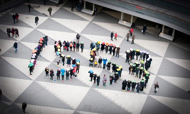 Tilaisuus päättyy kello 15.53. Osallistujat lähettävät silloin joukolla digitaalisia viestejä ja tekevät näin tunnetuksi liikettä.