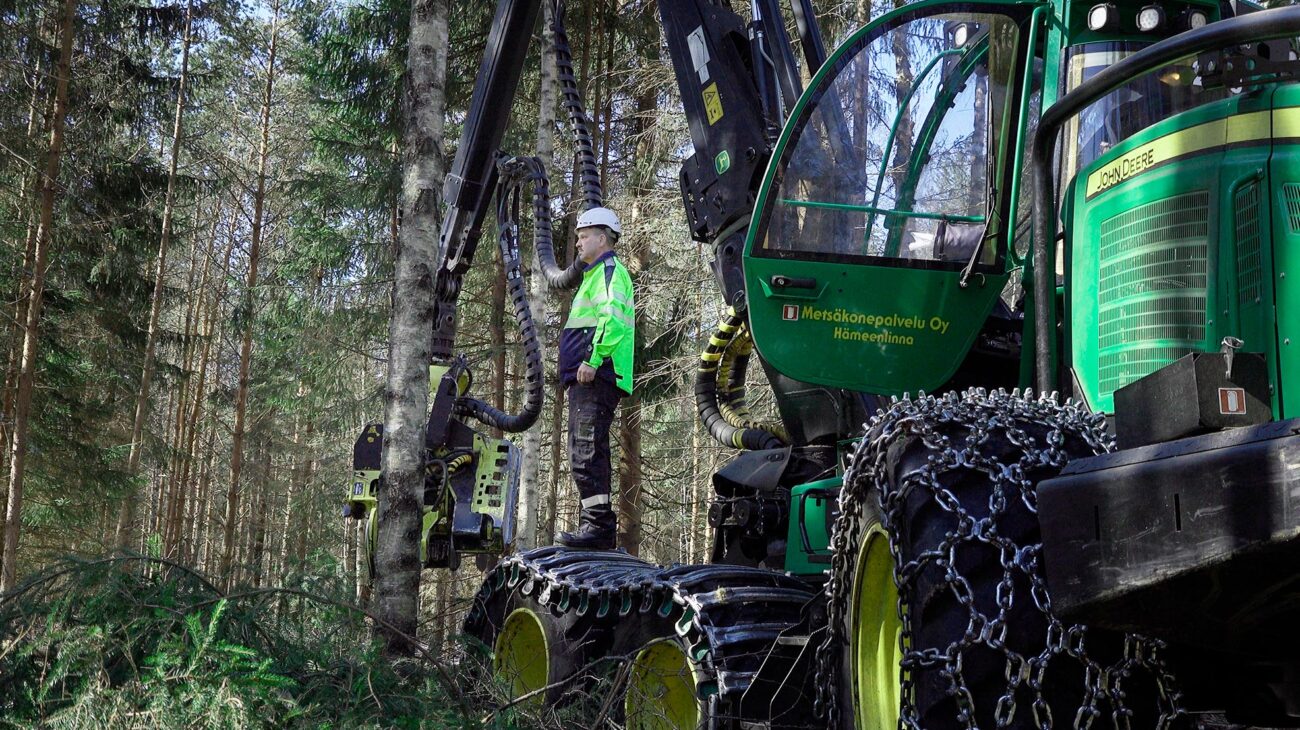Harvesterinkuljettaja Esa Sorilan metsäkoneessa on paljon tekniikkaa. Kuva: Jaakko Lukumaa