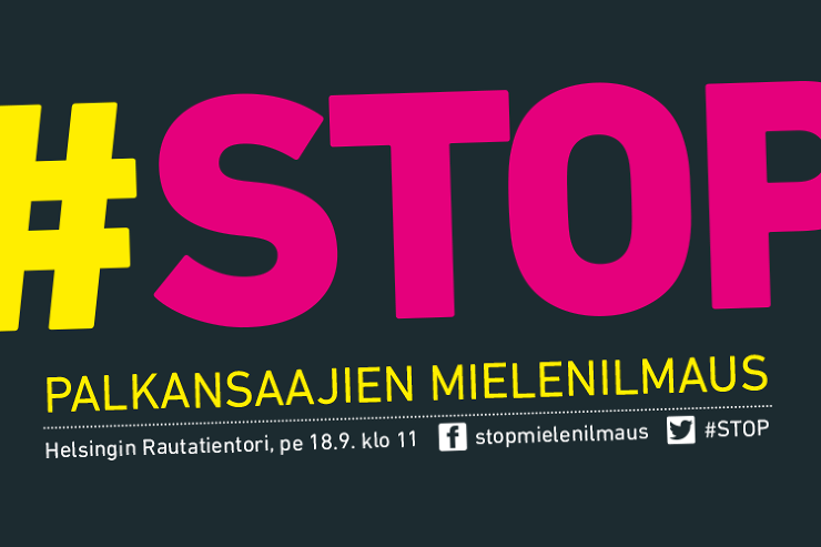 Osallistu keskustelupalstojen, Facebookin ja Twitterin keskusteluihin ja levitä tietoa mielenosoituksesta! Sosiaalisessa mediassa kannattaa lisätä omiin viesteihin mielenosoituksen tunniste #STOP.
