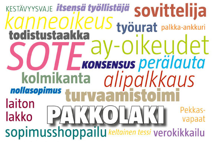 Pakkolaki on tullut syksyn mittaan tutuksi. Se ei ole oikeustieteellinen termi, vaan työmarkkinoiden arkikieleen iskostunut, Sipilän hallituksen aikomuksia tarkoittava käsite. Yksinkertaistaen pakkolaki tarkoittaa hallituksen kaavioissa, että työehtosopimuksilla ei saa sopia paremmin kuin lain katto maksimissaan määrää.