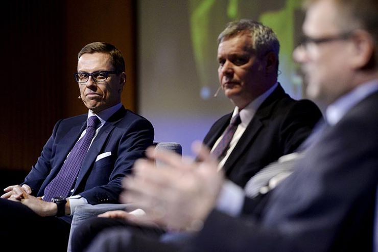 Alexander Stubb, Antti Rinne ja Juha Sipilä Vero 2015 -tapahtumassa maaliskuussa. Puheenjohtajat osallistuvat myös Työelämän vaalitenttiin keskiviikkona.