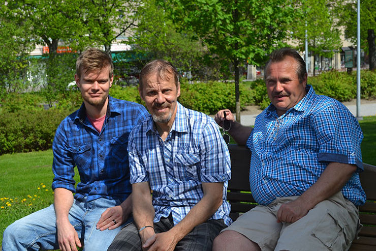Teijo Rantanen ja entiset telakkalaiset Hannu Keskitalo ja Mauri Kylänpää.