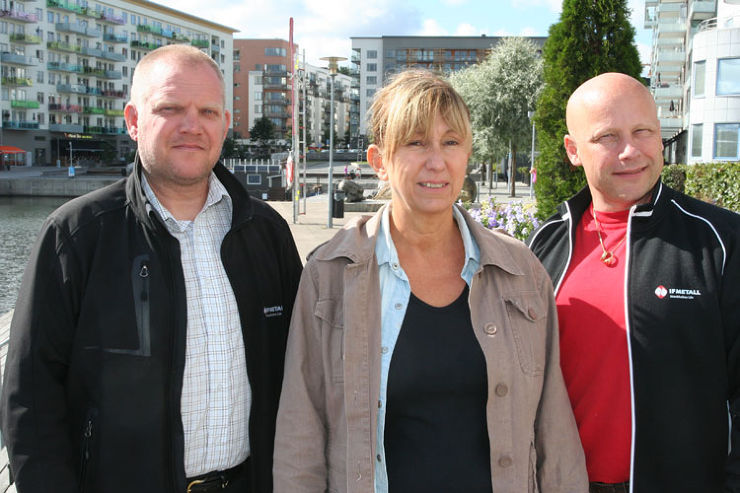 Luottamusmies Håkan Sundman (vas) ja työsuojeluvaltuutetut Ann-Cristine Rahmqvist ja Göran Alexandersson ovat huolissaan Ruotsin työpaikkojen tilanteesta.