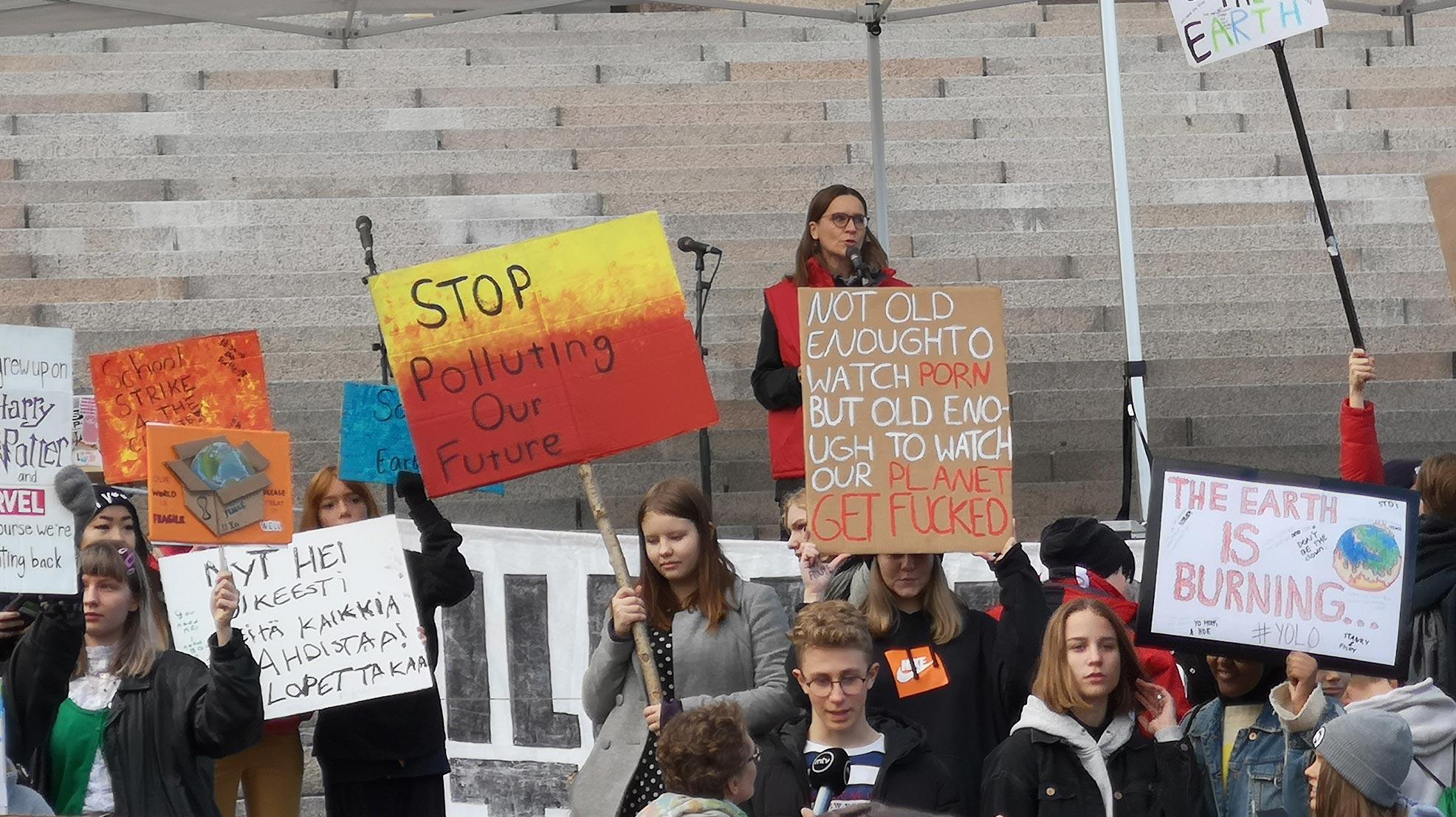 Lasten ja nuorten ilmastolakko-tapahtuma eduskuntatalolla 27. syyskuuta 2019.