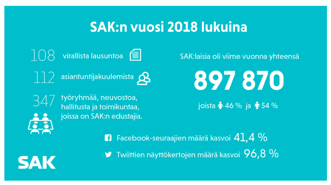 SAK oli ”kone taistelumoodissa” koko viime vuoden – Tutustu vaikuttamistyöhömme vuoden 2018 vuosikertomuksesta