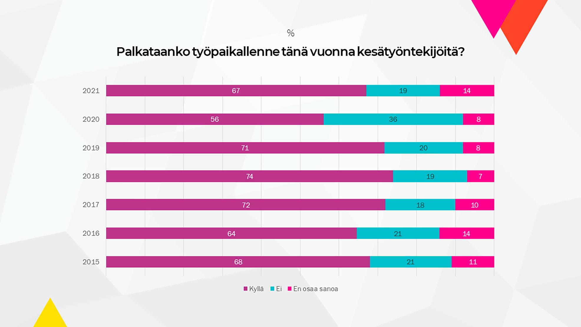 Vuonna 2019 luottamushenkilöistä 71 prosenttia kertoi, että heidän työpaikalleen palkataan kesätyöntekijöitä.