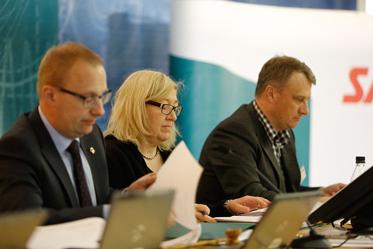 Valtuuston puheenjohtajisto: Jarkko Eloranta, Lilli Kilpinen ja Mika Vuoti