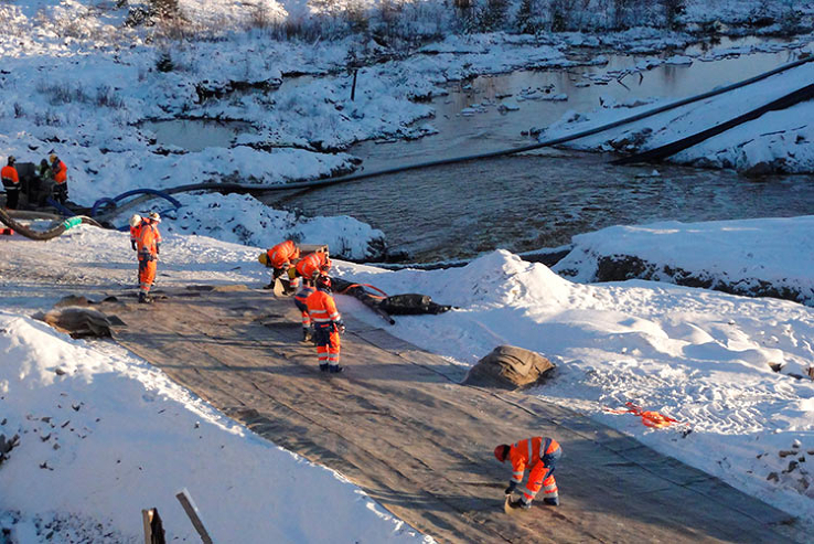 Talvivaaran jätevesivuotoa tukittiin levittämällä betoniittimattoa.