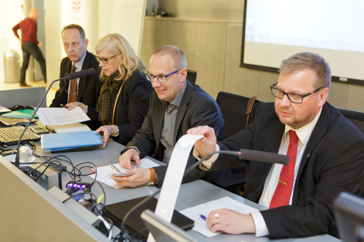 Tehyn kokoustiloissa liittojen kokouksessa 25.5.2015 oli mukana jo projektipäällikkö Juha Heikkala. Ohjausryhmän puheenjohtajisto VvL:n Liisa Halme, JHL:n Jarkko Eloranta ja Insinööriliiton Pertti Porokari.