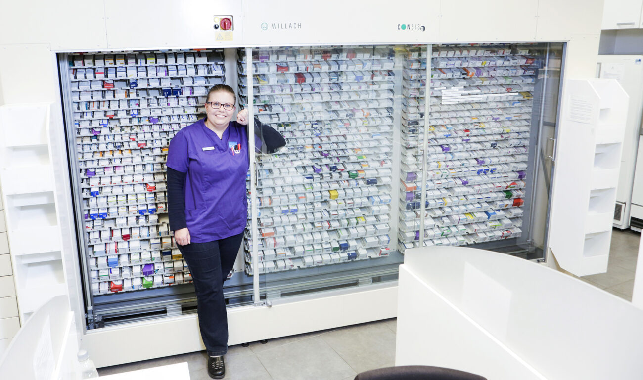 Varastoautomaatti on helpottanut Ulla Fagerströmin työtä. Kuva Laura Oja