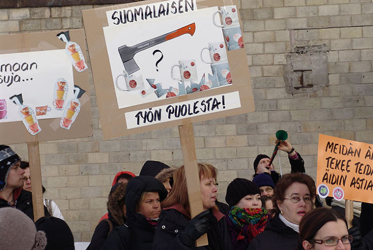 Arabian tehtaan työntekijät marssivat muutama vuosi sitten ulos työpaikaltaan ja protestoivat väen vähentämistä ja töiden siirtämistä Suomesta pois.