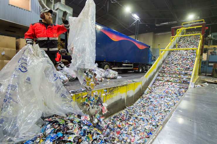 Tiimin kolmas mies, Zecko Todorov tyhjentää massiivisia pahvilaatikoita, tölkit ropisevat hihnalle ja pahvilaatikko lentää kaaressa isoon kekoon. Siitä sen matka jatkuu pahvina.
