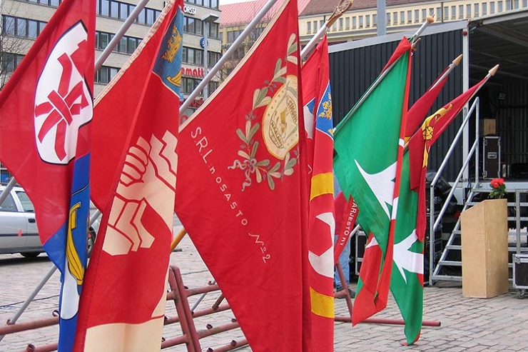 Lippurivistö Hakaniemen torilla vappuna 2005