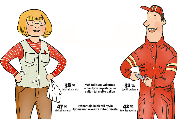 Julkisilla aloilla on hieman paremmat vaikutusmahdollisuudet omaan työhön kuin teollisuudessa.