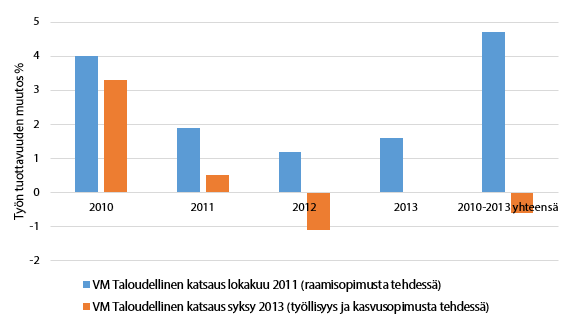 Raamisopimusta edeltävät ennusteet työn tuottavuuden kehityksestä pettivät