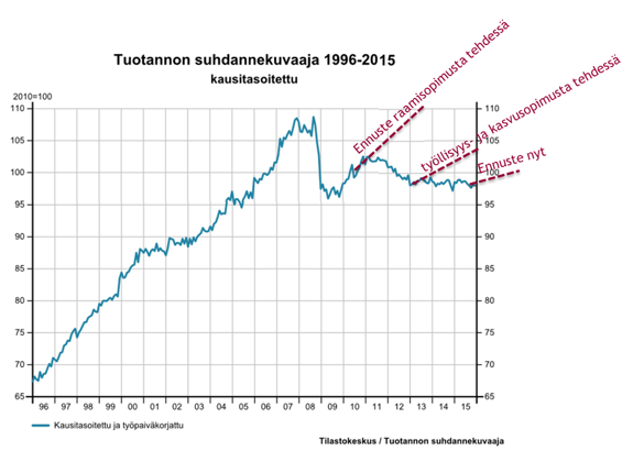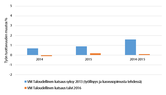 Työllisyys- ja kasvusopimusta edeltävät ennusteet työn tuottavuuden kehityksestä pettivät