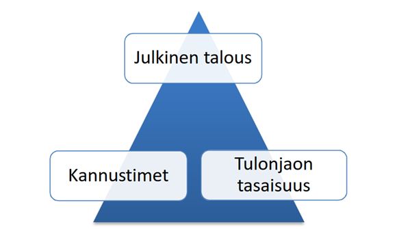 Kannustimien, julkisen talouden ja tulonjaon tasaisuuden välillä vallitseva valinta: uudistuksia tehtäessä on mahdollista valita kaksi.
