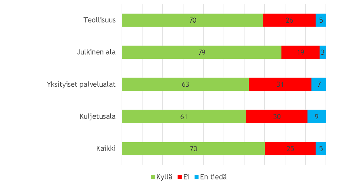 Onko työpaikalla mahdollista muokata työoloja työntekijän työkyvyn mukaan? (%)