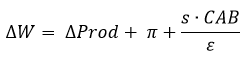 Kaavassa ∆W on palkankorotusvara (nimellispalkkojen muutos sisältäen sivukulut ja työnantajamaksut), ∆Prod on tuottavuuden muutos ja π on inflaatio (kuluttajahintojen muutos). Tähän asti kyseessä on ihan perinteinen palkkanormi, mutta viimeinen termi kuvaa palkkojen asetantaa suhteessa vaihtotaseeseen. 2)