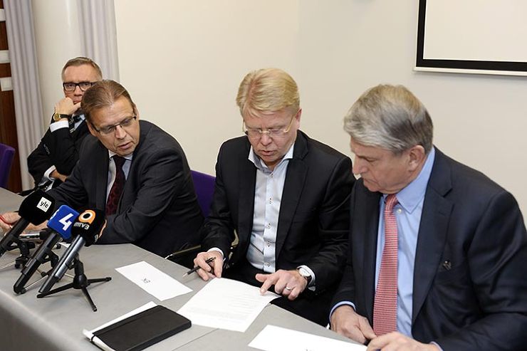 STTK President Mikko Mäenpää, SAK President Lauri Lyly, EK Director General Jyri Häkämies and EK President Ilpo Kokkila