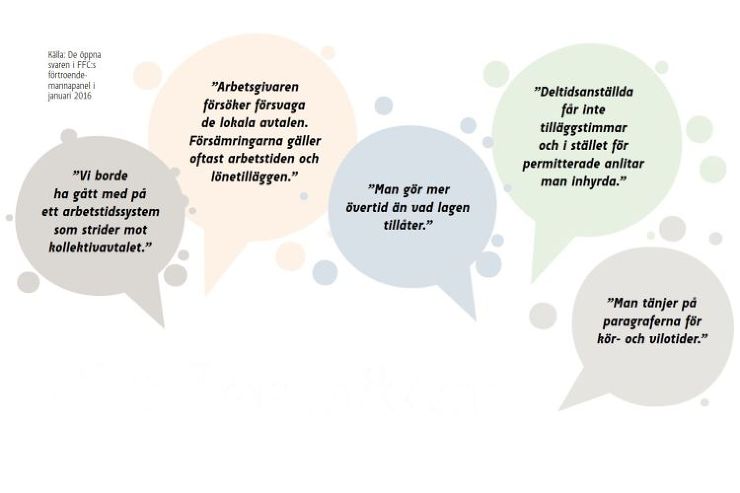 I de öppna svaren är det iögonenfallande många som berättar att arbetsgivaren ensidigt bestämmer hur samarbetslagen ska tolkas. Förhandlingar har förts endast för formens skull och arbetsgivaren har fattat besluten på förhand. Många berättar om arbetsgivare som avsiktligt har ”glömt” att föra samarbetsförhandlingar eller som anser att samarbetsförhandlingar inte behövs.