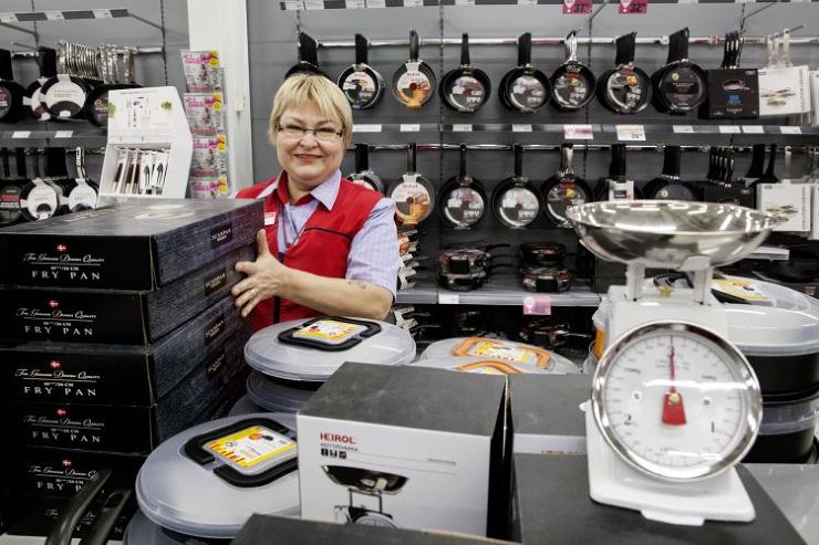 Tarja Puotsaari jobbar som försäljare på hemavdelningen på K-Citymarket i Kuppis i Åbo. Hon hör till de lyckliga som har både heltids- och fastanställning. Det är verkligen ingen självklarhet inom handelsbranschen där deltidsanställningar är vardag för många.