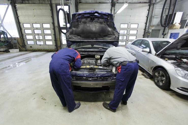 – Först ska vi byta ut framlamporna. Om jag tar den ena sidan, så tar du den andra, meddelar Kaj.