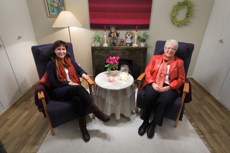 – De gemensamma stunderna här kan förlänga hemmaboende med flera år, säger Maria Granberg-Somppi och Maj-Len Loo i den hemtrevliga och trygga miljön på Förgätmigej.