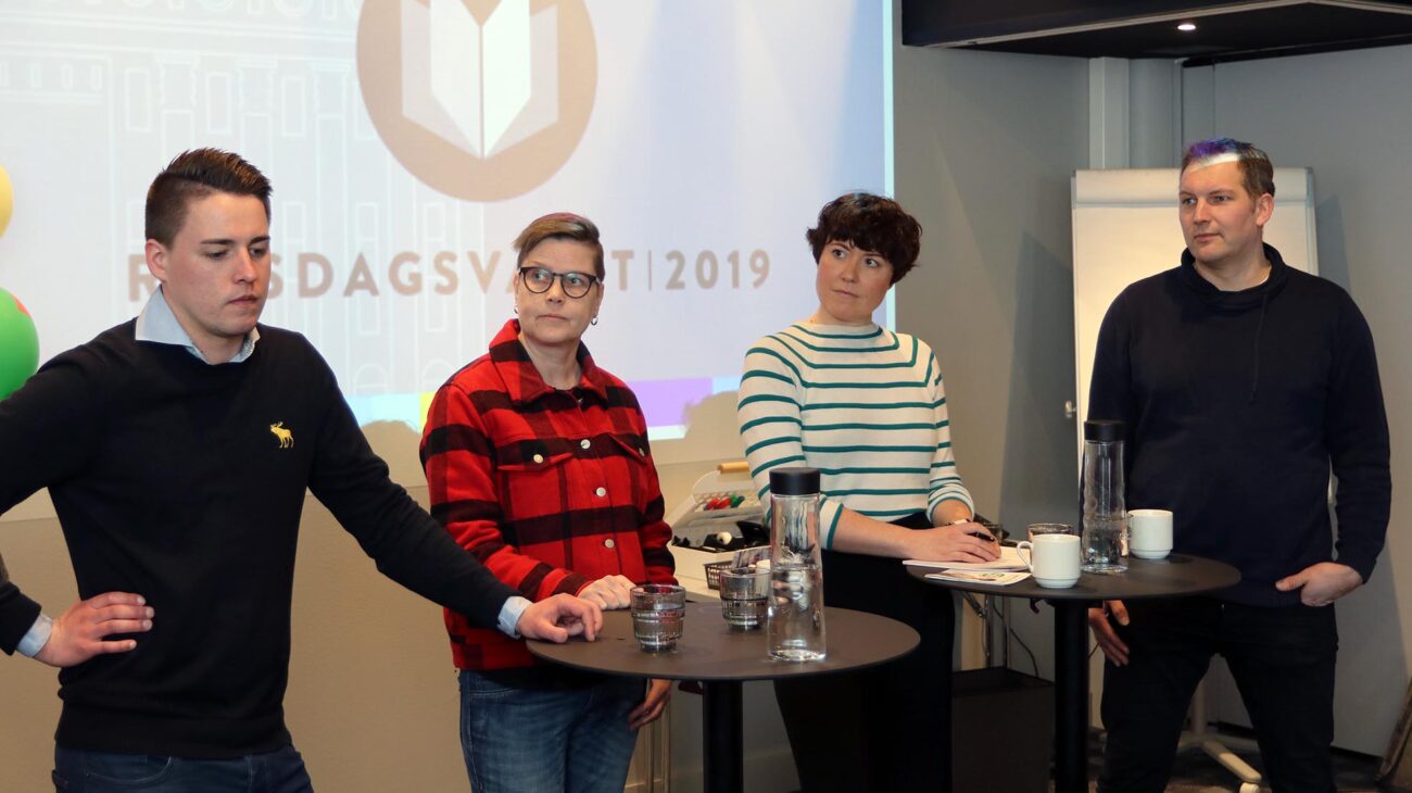 I debatten i Vasa deltog Christoffer Ingo (SFP), Lisen Sundqvist (VF), Laura Ala-Kokko (Gröna) och Viktor Kock (SDP). Foto: Jonny Smeds