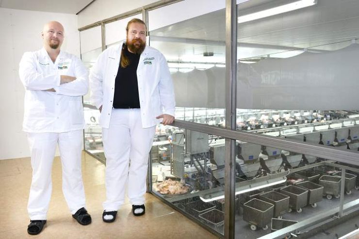 När man använder vassa knivar är det viktigt att man kan lita på att arbetskamraterna inte är påverkade av droger, betonar Hannu Mäkelä och Asko Peltola på Snellman.