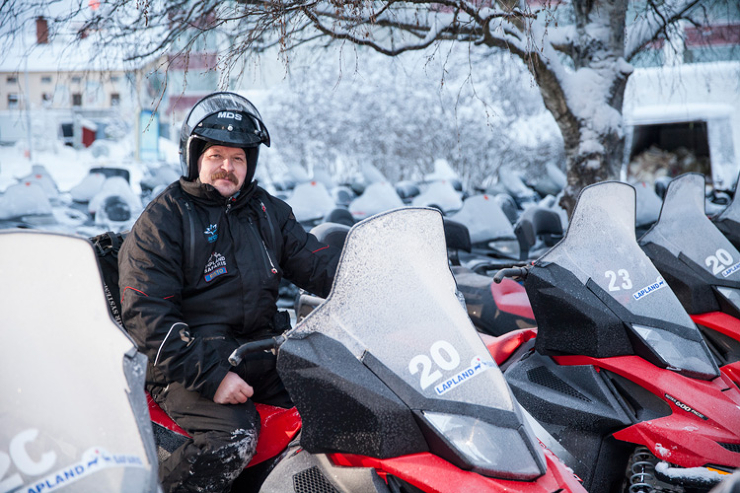 Vuento guidar kunder på natursafarin och bland annat på snöskoterturer. Han säger att det bästa med jobbet är självständigheten och att få vara ute i naturen. Ett minus är att det är säsongsbetonat, så det är tufft.
