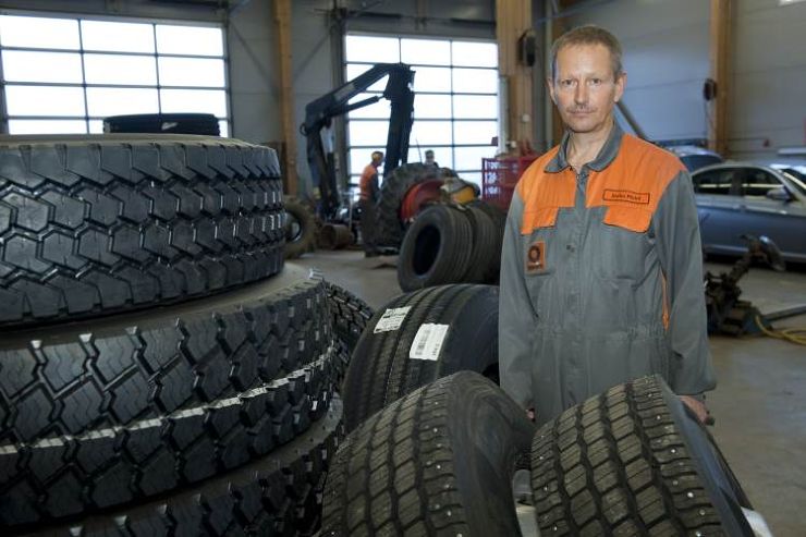 Däckmontören Jouko Muhli har 37 års yrkeserfarenhet av branschen, och han har varit med i den arbetsgrupp som administrerar däcksäkerhetsutbildningen sedan starten 2006.