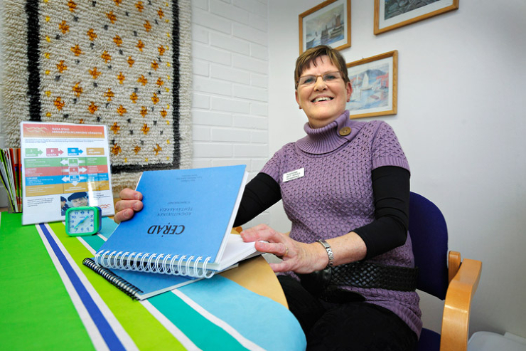 – Då vi fått svar från röntgen kallar vi patienten till ett andra besök. Först då ger läkaren diagnosen. Vid minnessjukdom påbörjas medicinering med s.k. bromsmedicin. Funktionsförmågan upprätthålls längre men minnet kommer inte tillbaka, säger Britt som gör upp en minnesrehabiliteringsplan för patienten.