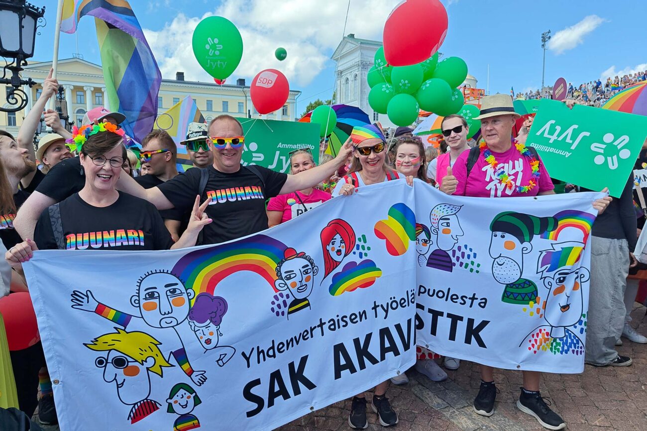 SAK on mukana Helsinki Pride -kulkueessa lauantaina 28.6.2025. Kulkue starttaa Senaatintorilta kello 12.