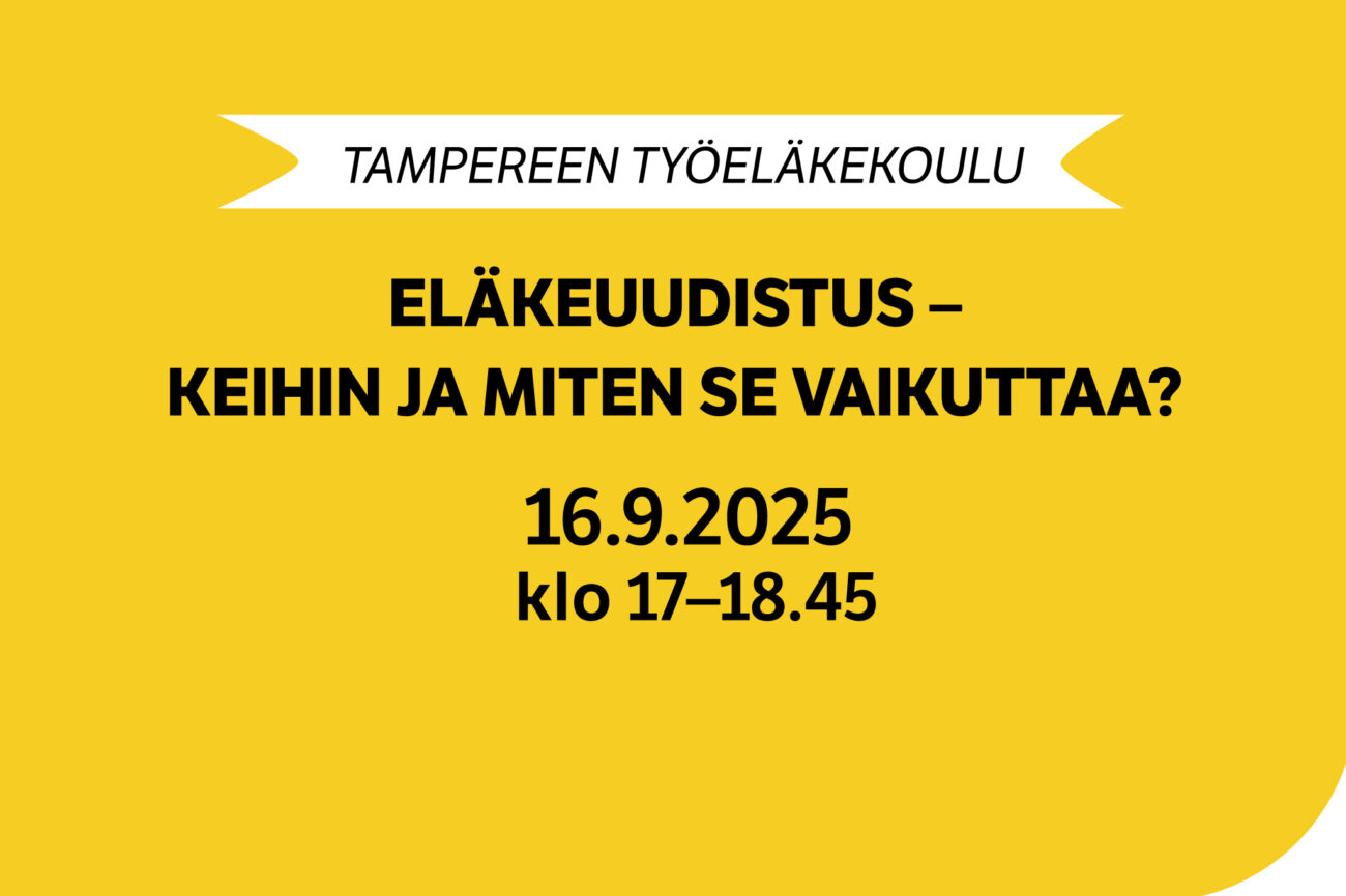 Tervetuloa mukaan Tampereen työeläkekouluun kuulemaan eläkeuudistuksesta ja sen mahdollisista vaikutuksista palkansaajalle.